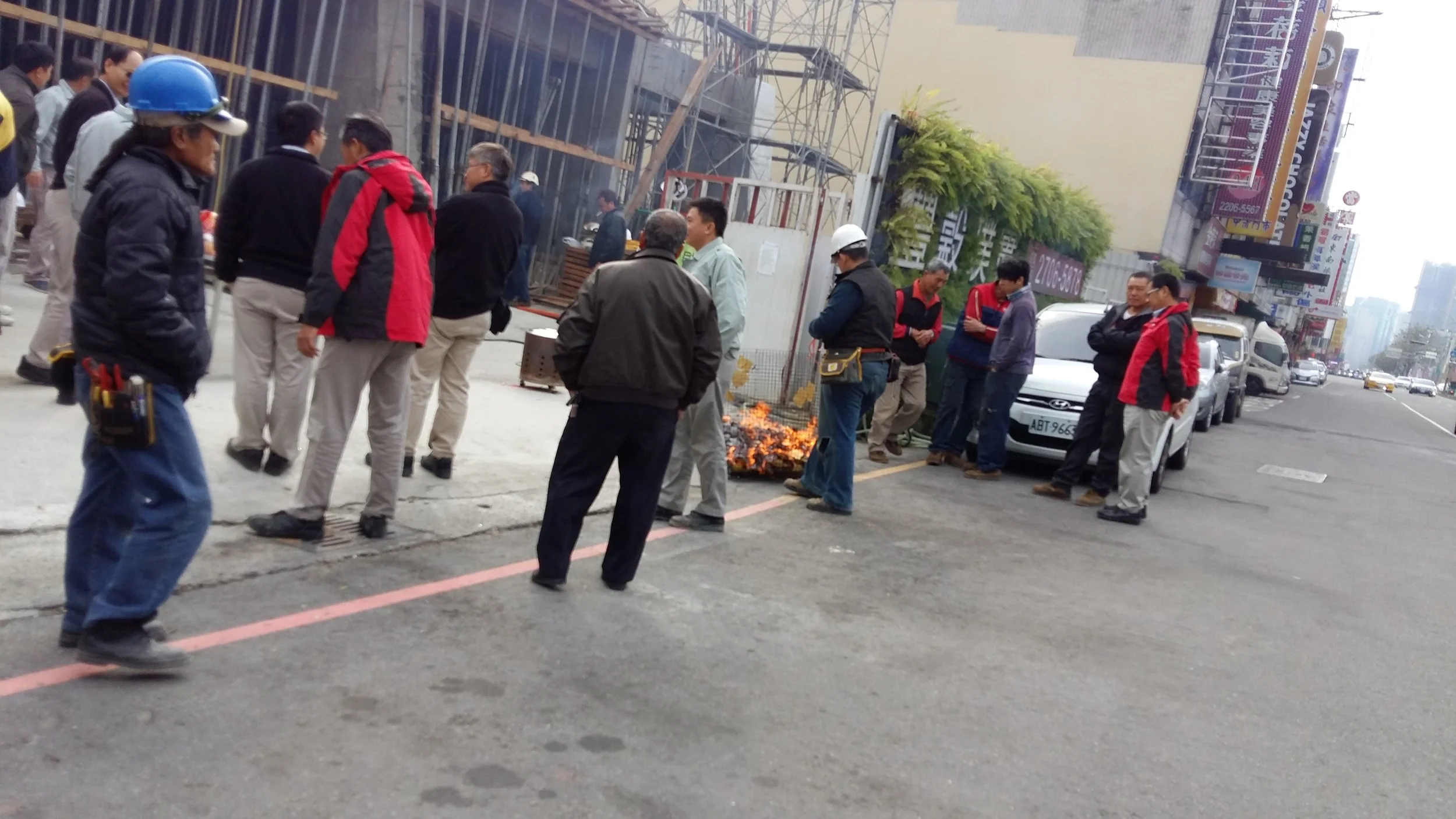 Construction Workers Gather to Burn Spirit Money for Blessings on Their Work
